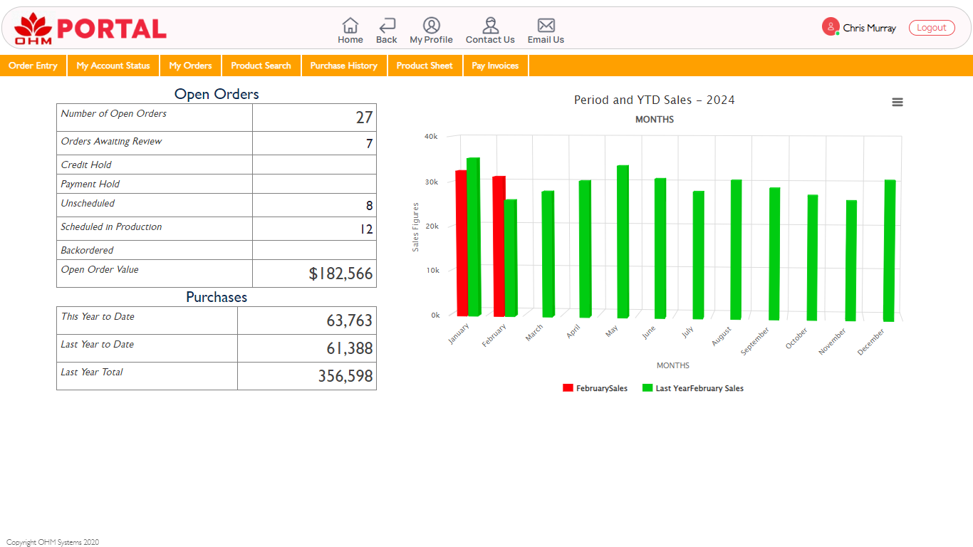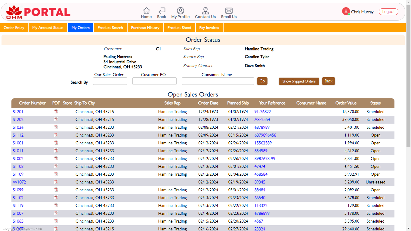 Your customers can review orders, place new orders, print invoices, pay invoices, make prepayments via ACH and Credit Cards and review their comprehensive sales history, purchase orders, and usage statistics – all with personalized access levels based on individual profiles.